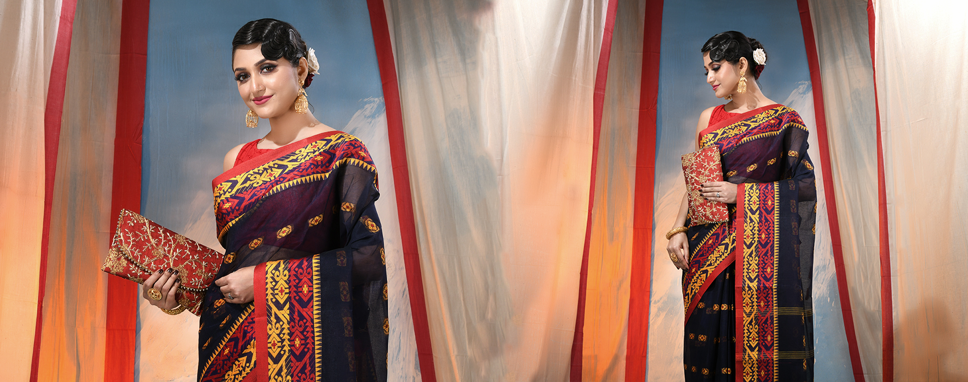 Desh Bidesh Bengal Saree is a Govt. Registered saree Brand and We have our own three manufacturing units at Kalna, Fuliya and Santipur, West Bengal. Our speciality is that we do our own end to end process from quality thread collection to manufacturing to warehousing to selling all over India. We always try to bring the satisfactory smile on your face when you buy a traditional and original bengal saree. We deal 100% affordable bengal saree in both online and offline channels to sell our products across the country. Our exclusive designer sarees are also available on various e-commerce platforms like amazon, flipkart, myntra, snapdeal , paytm and reliance.